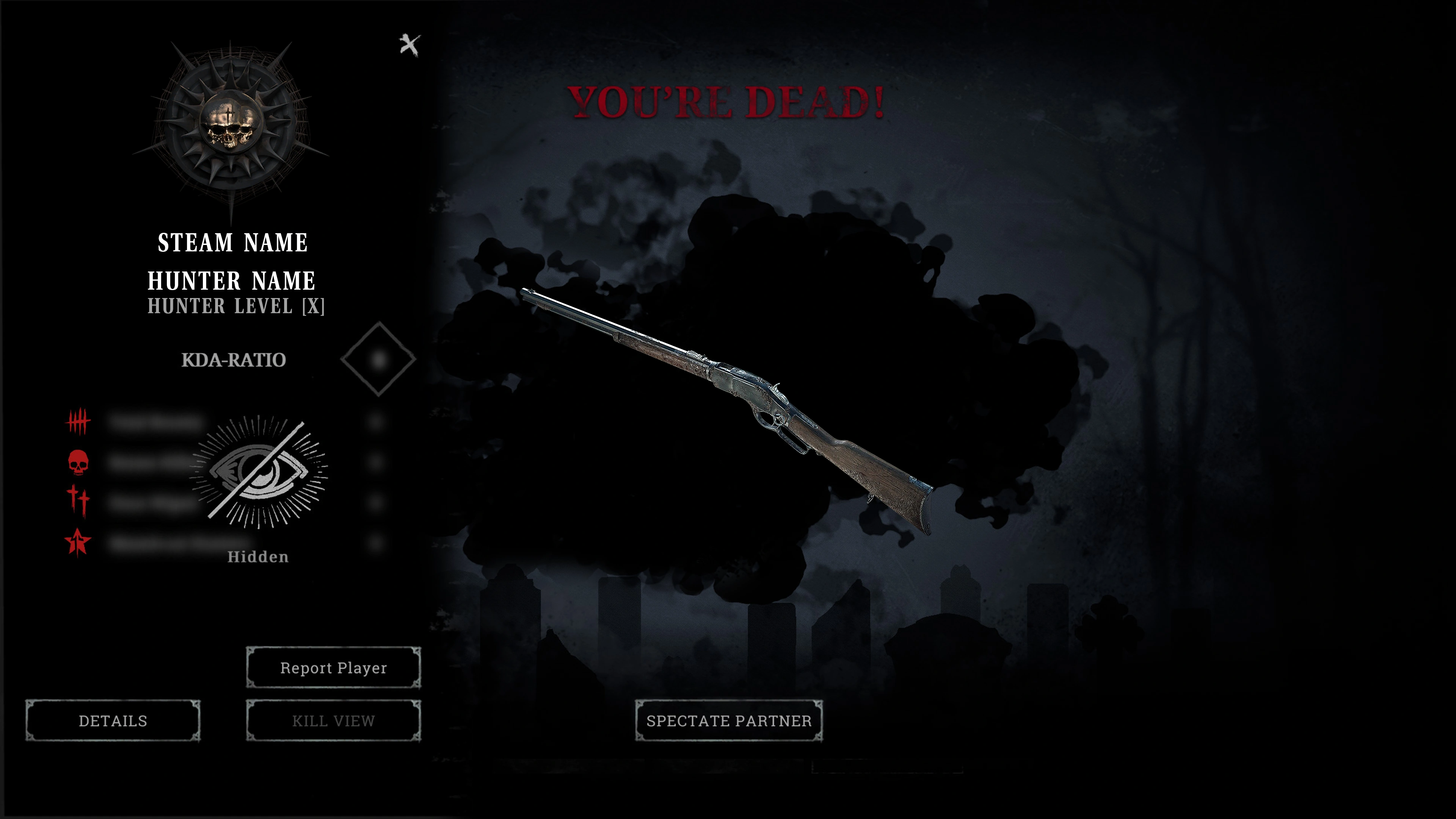 - Hunter name and level