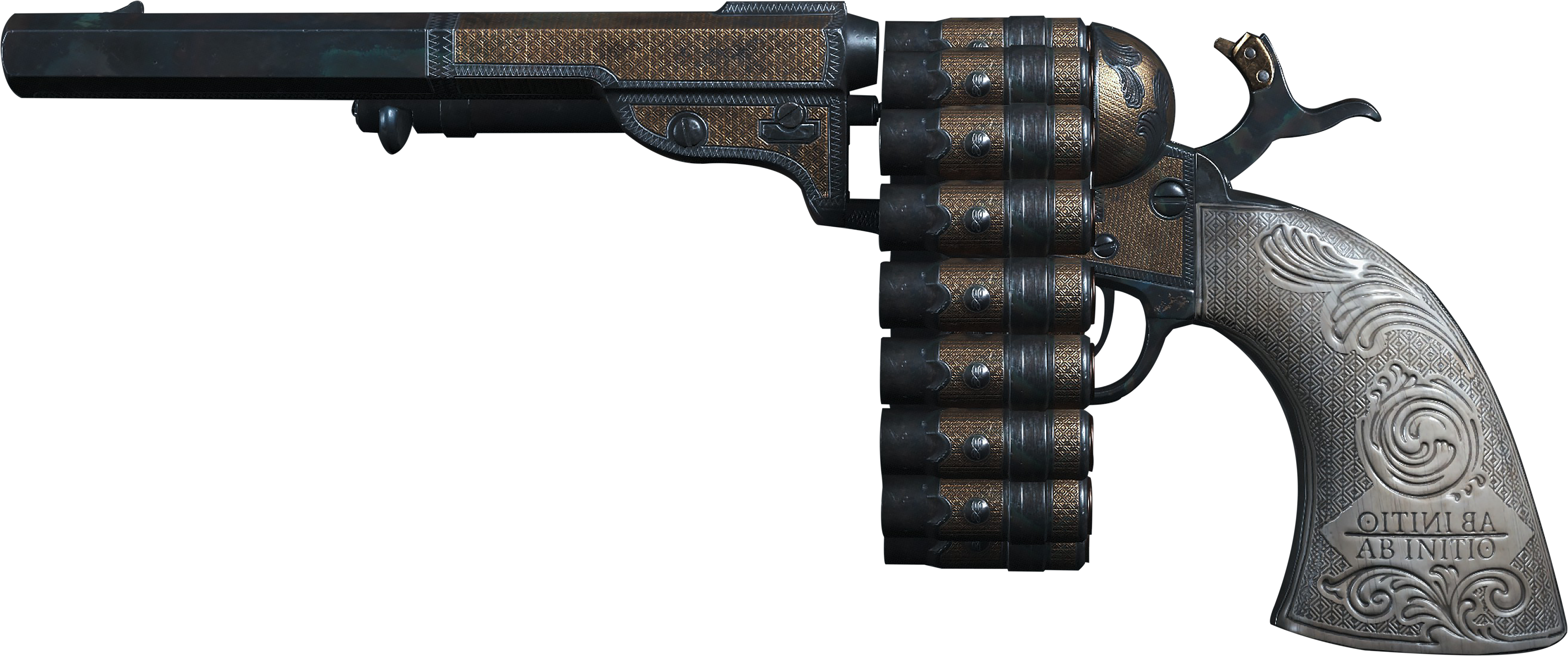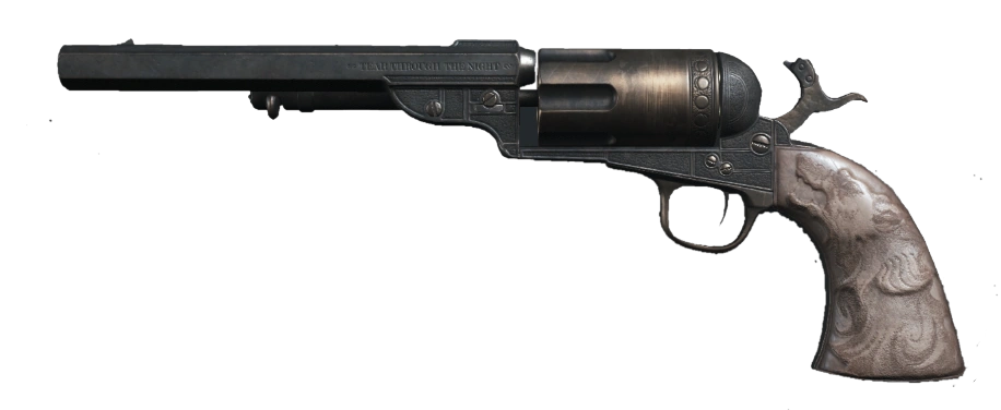 Brass Flower | 700 | LeMat Mark II Revolver | The preferred side arm of Sheriff Hardin, this was known to pack a punch when the chips were down. |