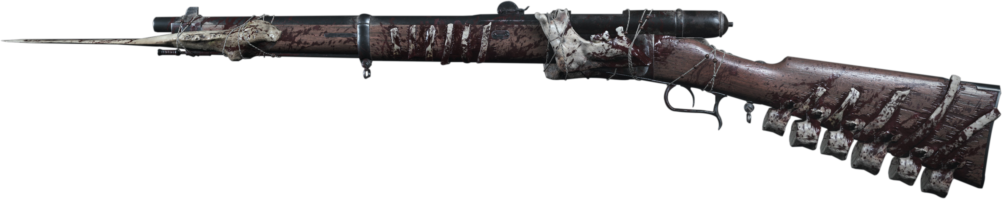 Baptismal Blood | Requires DLC Crossroads | Mosin-Nagant M1891 Avtomat | This Mosin-Nagant Avtomat is presented to Acolytes of the Night for their final initiation rite. If they pass or fail, they add either their enemies' blood, or their bone. |