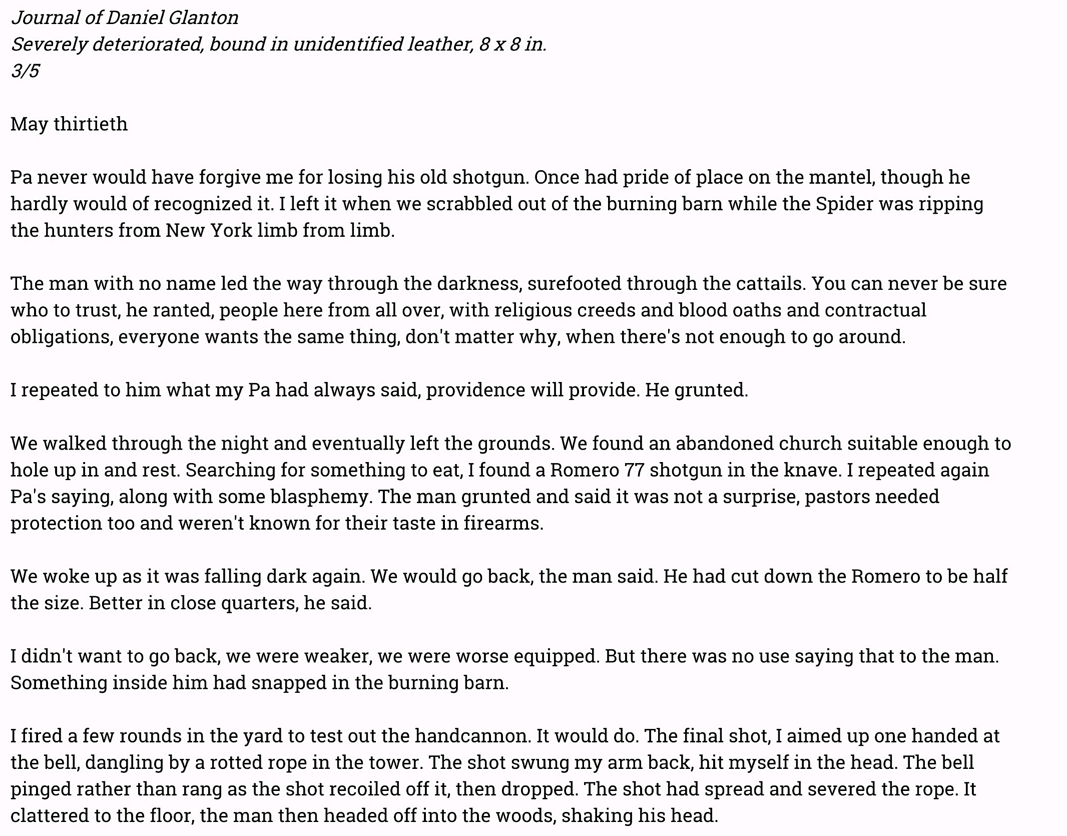 Single solid projectile that can be used in shotguns to provide an advantage in range and penetration over buckshot. Reduced ammunition. Not effective at long distances.